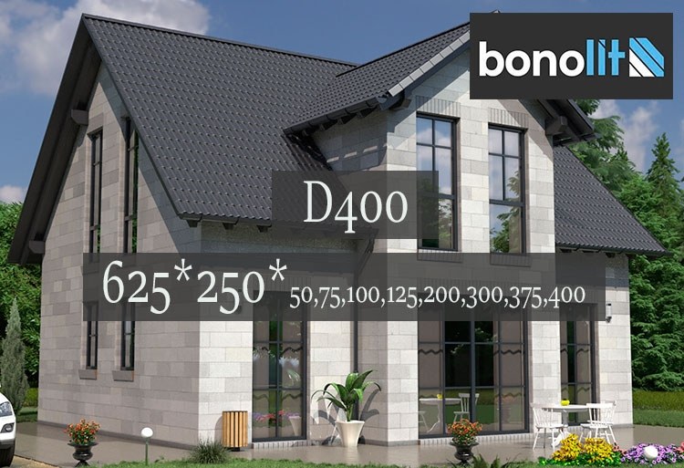 Блоки BONOLIT D400 прочностью B2.5 позволяют возводить дома до 2-х этажей включительно.